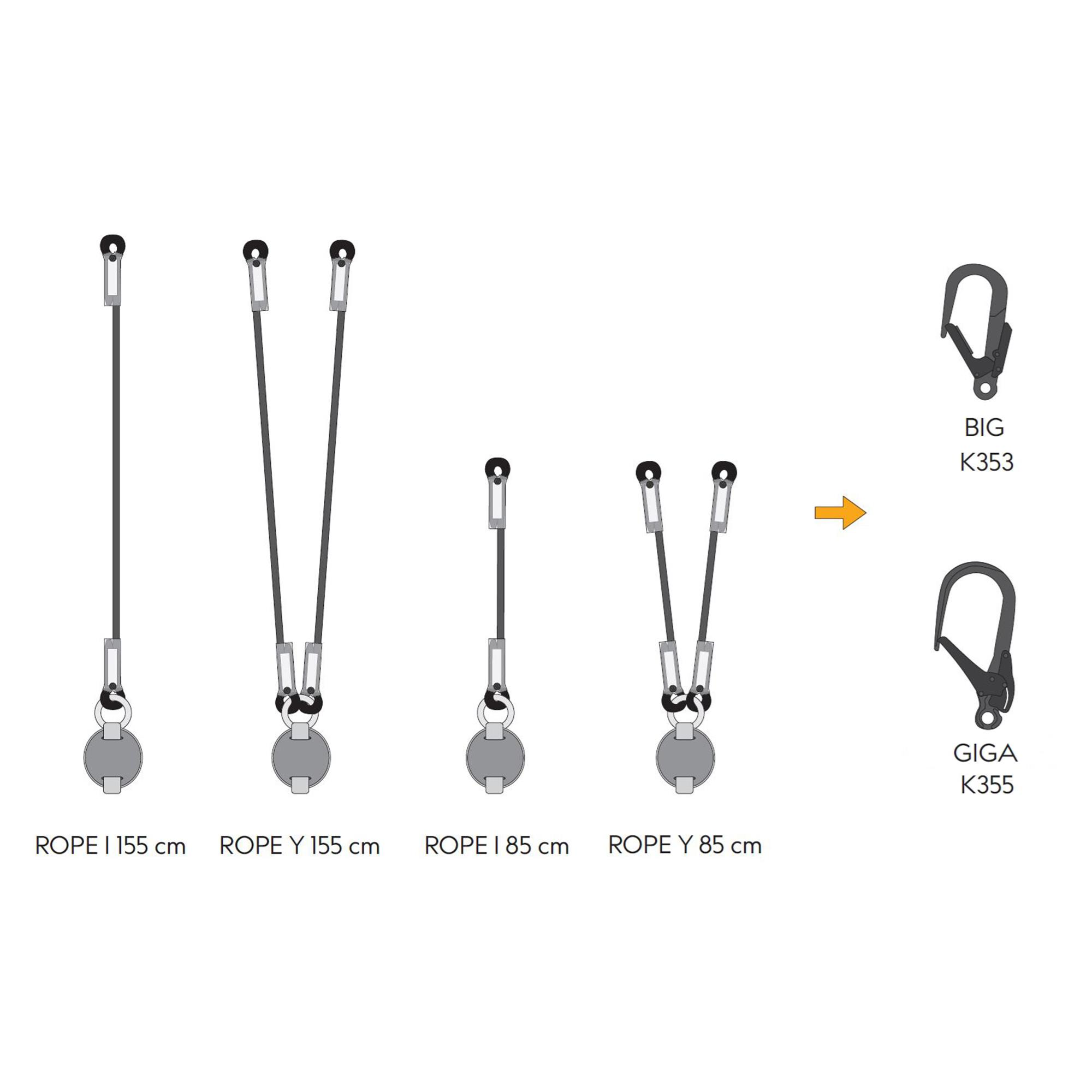 Párací tlumič pádu s lanovými lanyardy I nebo Y / pro uživatele do 140 kg / několik délek a dvě varianty spojky / EN 355